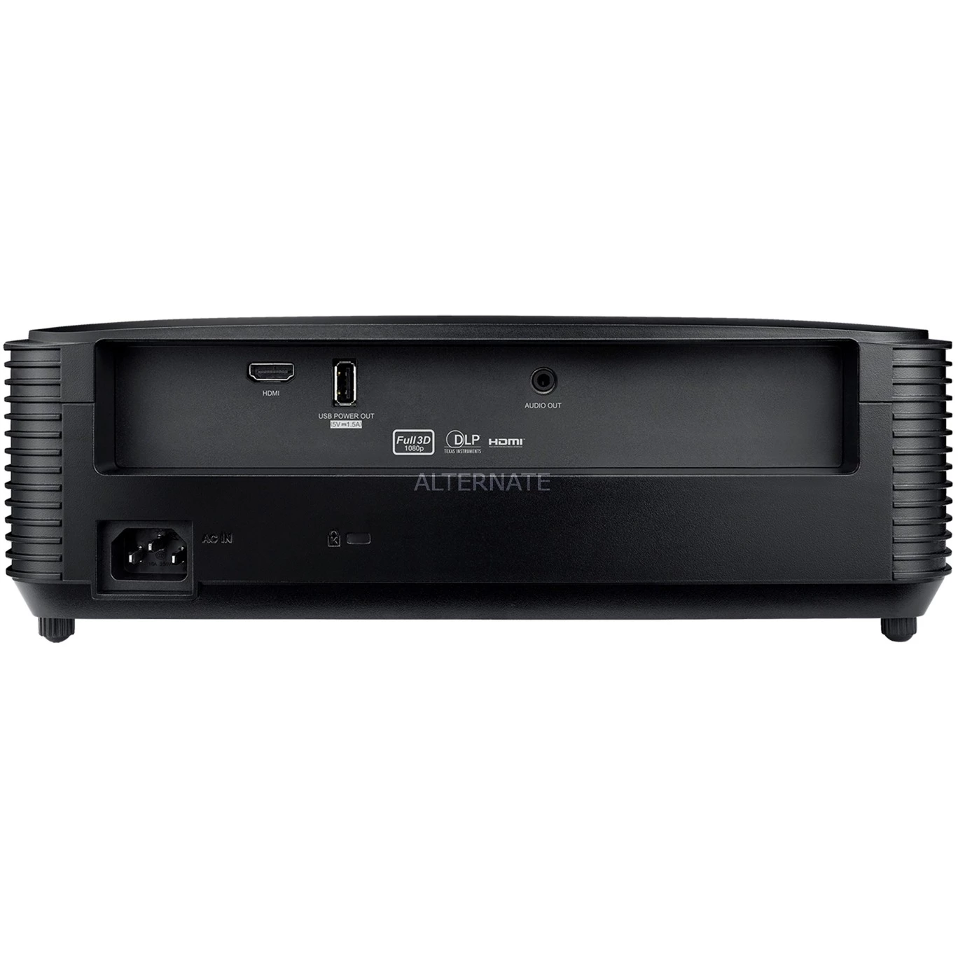 Mit dem DH351 DLP-Beamer von Optoma taucht man in die hochauflösende Welt von FullHD ein. Mit 1.920 x 1.080 Pixeln löst der DH351 besonders hoch auf. Egal ob Gaming, Serien, Filme oder Bilder – feinste Details und eine hohe Detailtiefe sind in jedem Moment sichtbar. Dank des hohen Kontrast erreicht man hellere Weiß- und dunklere Schwarztöne. Mittels KeyStone Korrektur kann das Bild optimal ausgerichtet werden um auch bei größeren Projektionen den Überblick zu behalten. Die 3.600 ANSI-Lumen helle Optik erzeugt, je nach Wandabstand, Projektionen zwischen 0,71 – 7,65 m (oder ~28 – 301″) Diagonale wodurch sich der DH351 sowohl für den Heim- als auch Büroraum oder für Hallen eignet. Für ein vollständiges Heimkino-Erlebnis ist ein 5 Watt starkes Stereo Soundsystem integriert, damit man sich den Aufwand für zusätzliche Boxen ersparen kann.