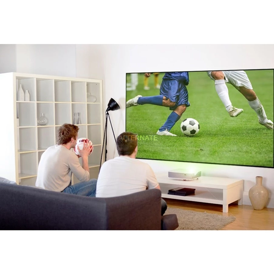 TV-Fans, Gamer und alle, die gerne Sportveranstaltungen oder Filme sehen, werden von der Umgebungslicht-abweisenden Projektionsleinwand Optoma ALR120 begeistert sein. Diese leistungsstarke Frontprojektionswand ist für den Einsatz mit einem Ultra-Kurzdistanz-Projektor konzipiert, um auch in hell beleuchteten Räumen lebendige Bilder zu erzielen. Man kann übergroße Bilder auf der 120″ großen Leinwand mit festem Rahmen zu jeder Tageszeit genießen. Die spezielle Leinwandoberfläche ist so konzipiert, dass sie ein projiziertes Bild für hohen Kontrast und Farbsättigung aktiv reflektiert und gleichzeitig verhindert, dass das Umgebungslicht das Bild ausgewaschen erscheinen lässt.